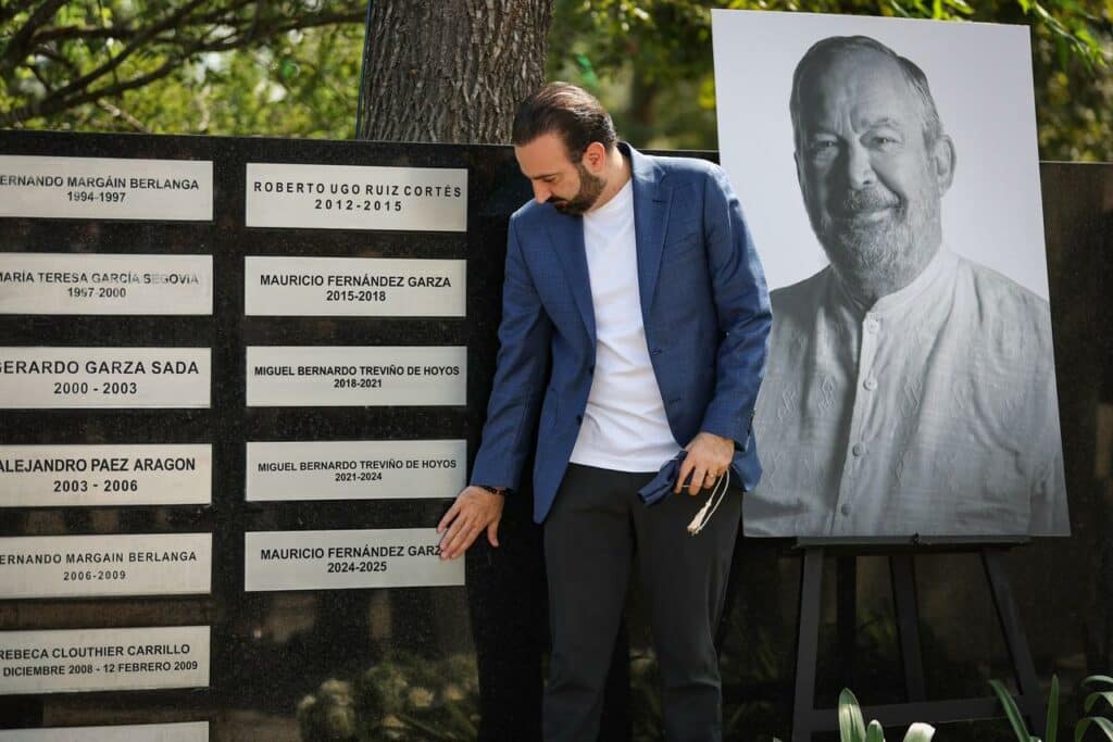 Devela San Pedro placa de Mauricio Fernández Garza en el monumento de Presidentes Municipales